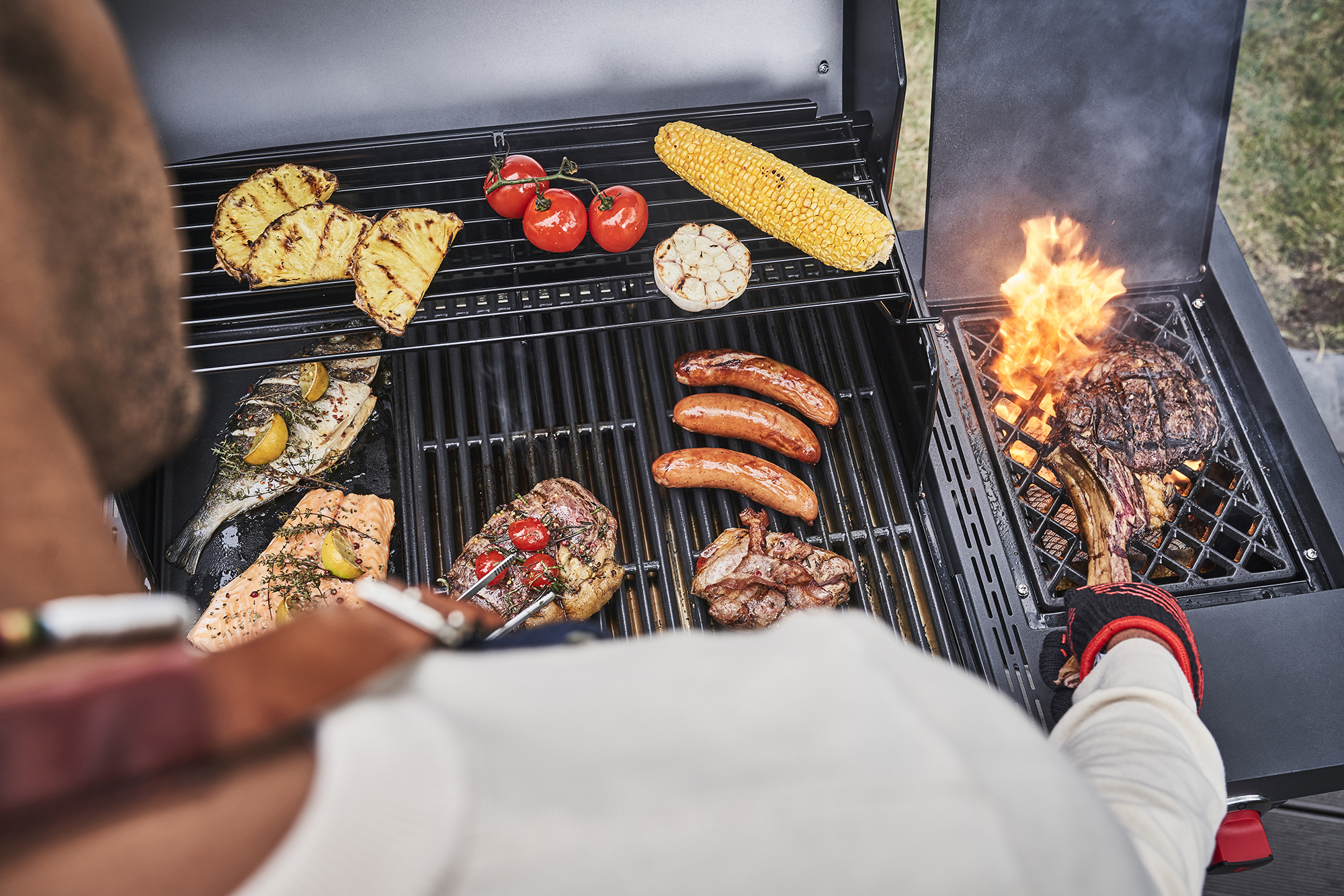 • Mehr Grillpower durch Hochleistungs-Sear-Brenner - Mit dem Hochleistungshitzesystem, das auf dem Brenner Temperaturen von bis zu 900°C erreicht, gelingt eine knusprige Kruste und der perfekte Grillschmack. Der massive Grillrost aus Gusseisen überträgt die Hitze optimal und erzeugt ein schönes Branding.