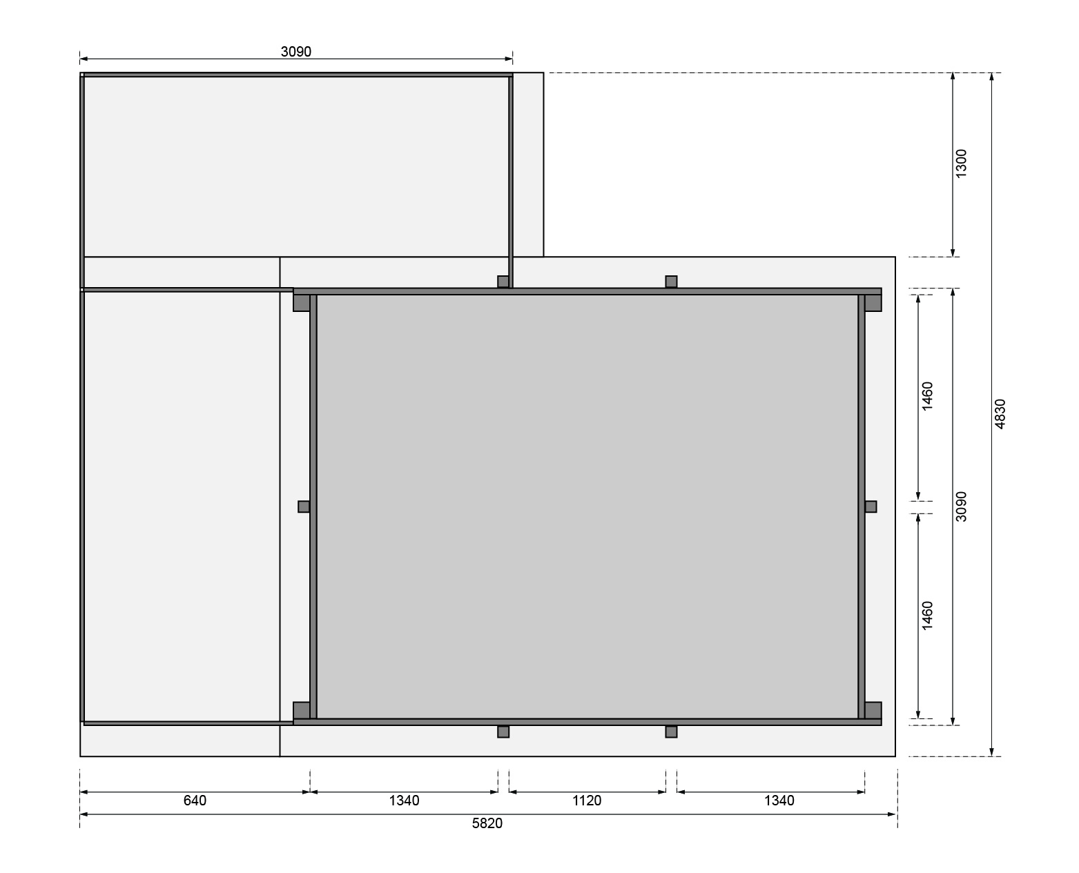 Außenmaß: 2,76 x 3,09 m 3,96 x 3,09 m 4,86 x 3,09 m