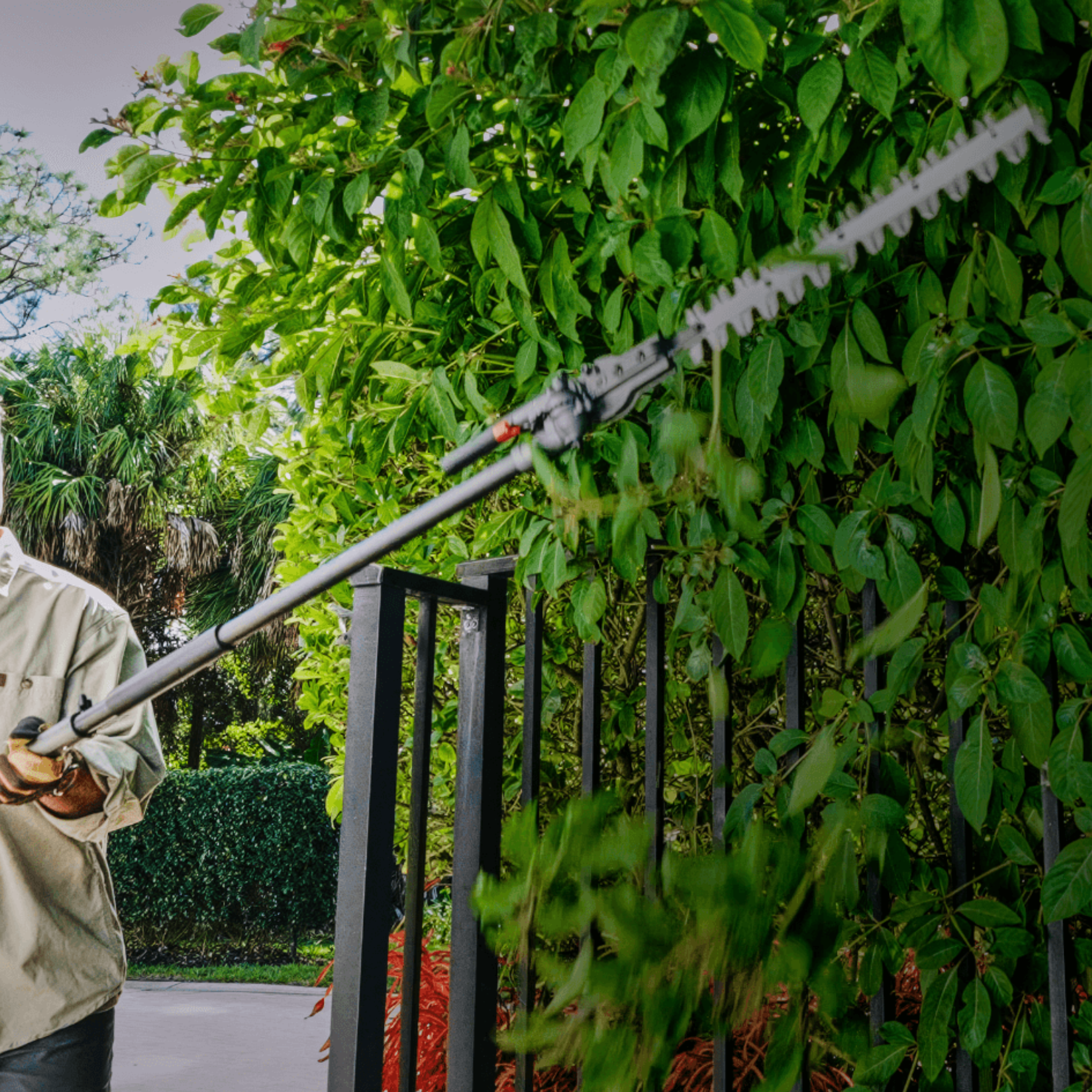 • Flexibel einsetzbar: Das Mehrfachaufsatz-System macht den Akku-Grasschneider vielseitig für unterschiedliche Aufgaben in der Grünpflege.