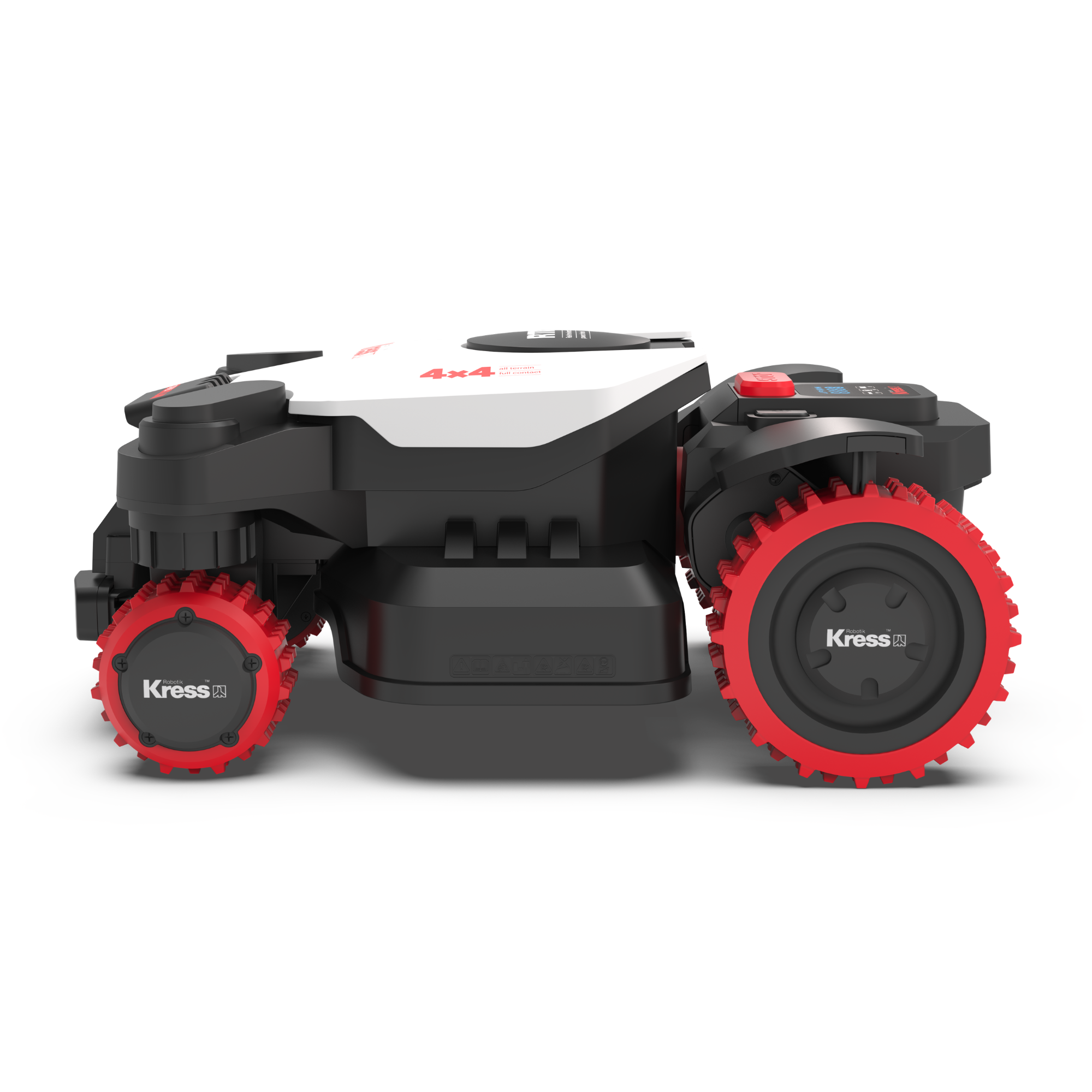 Der Kress EyePilot RTKn 4×4 KR285E ist das leistungsstärkste Modell der EyePilot-Serie für den privaten Einsatz. Er wurde speziell für sehr große Grundstücke bis 5.000 m² mit extremen Steigungen, unebenem Gelände und komplexen Mähzonen entwickelt.