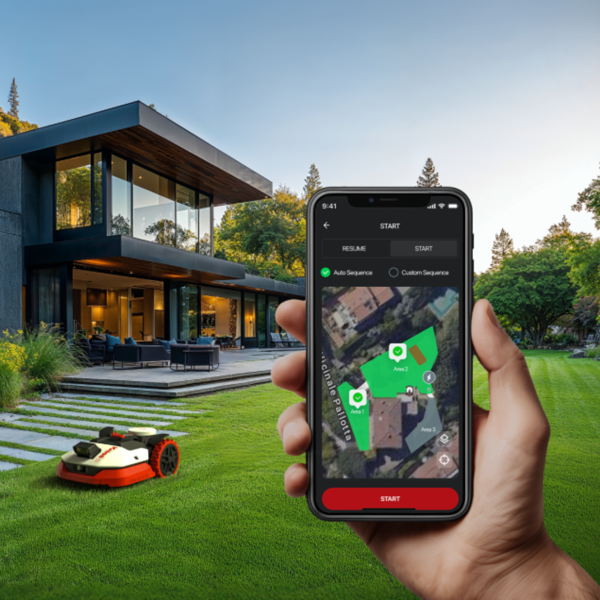 • RTKn + Vision Navigation – präzises Mähen auch bei Bäumen und Gebäuden