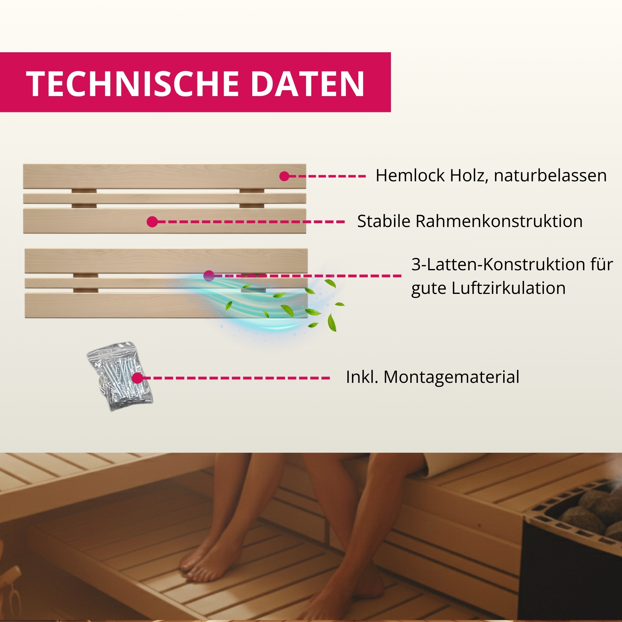 • Natürliches Design: Das helle, fein gehobelte Holz harmoniert perfekt mit jeder Saunaeinrichtung und unterstreicht eine warme, einladende Atmosphäre.