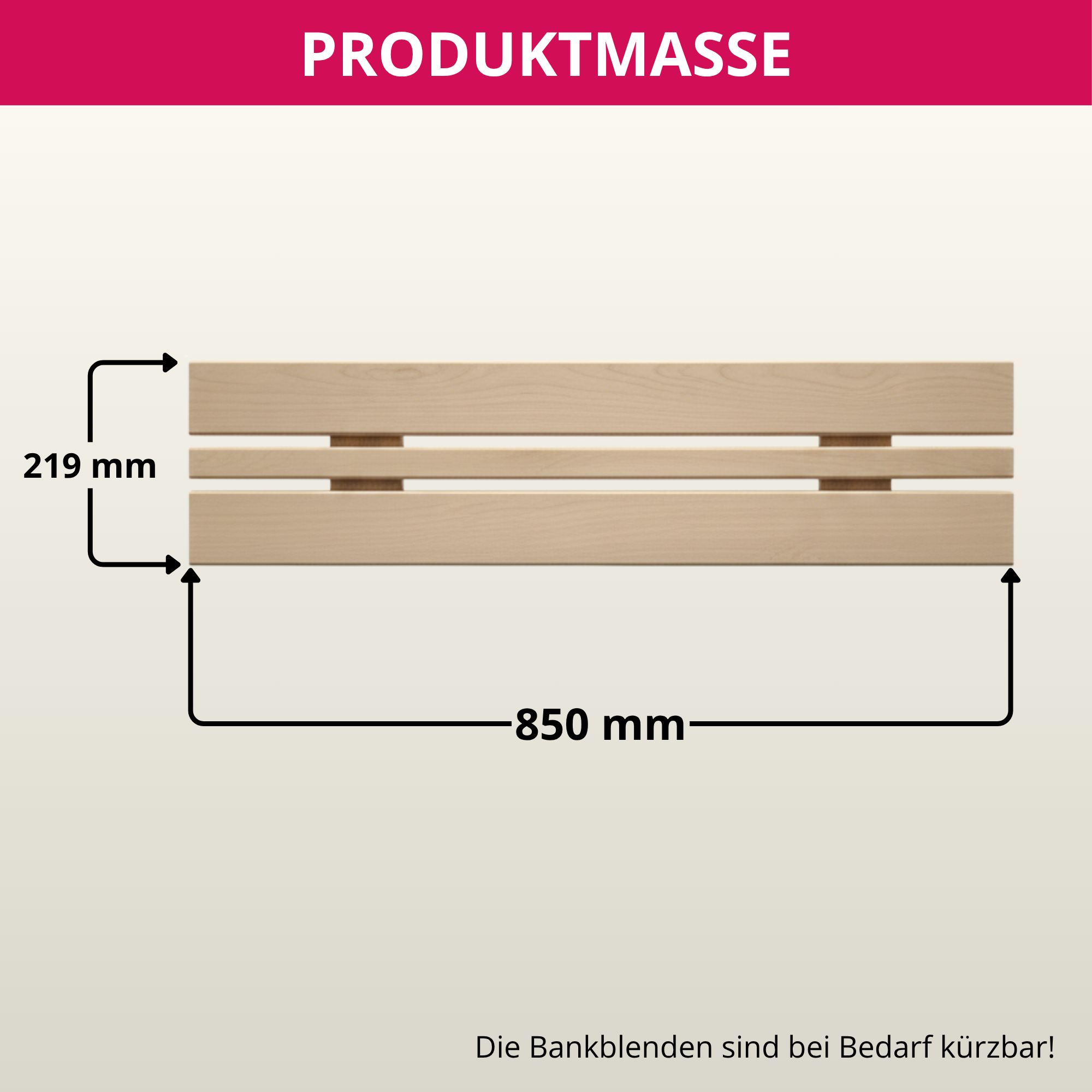 • Sauberer Abschluss: Verkleidet die offenen Frontflächen Ihrer Saunabank und sorgt für ein ästhetisch geschlossenes Erscheinungsbild.