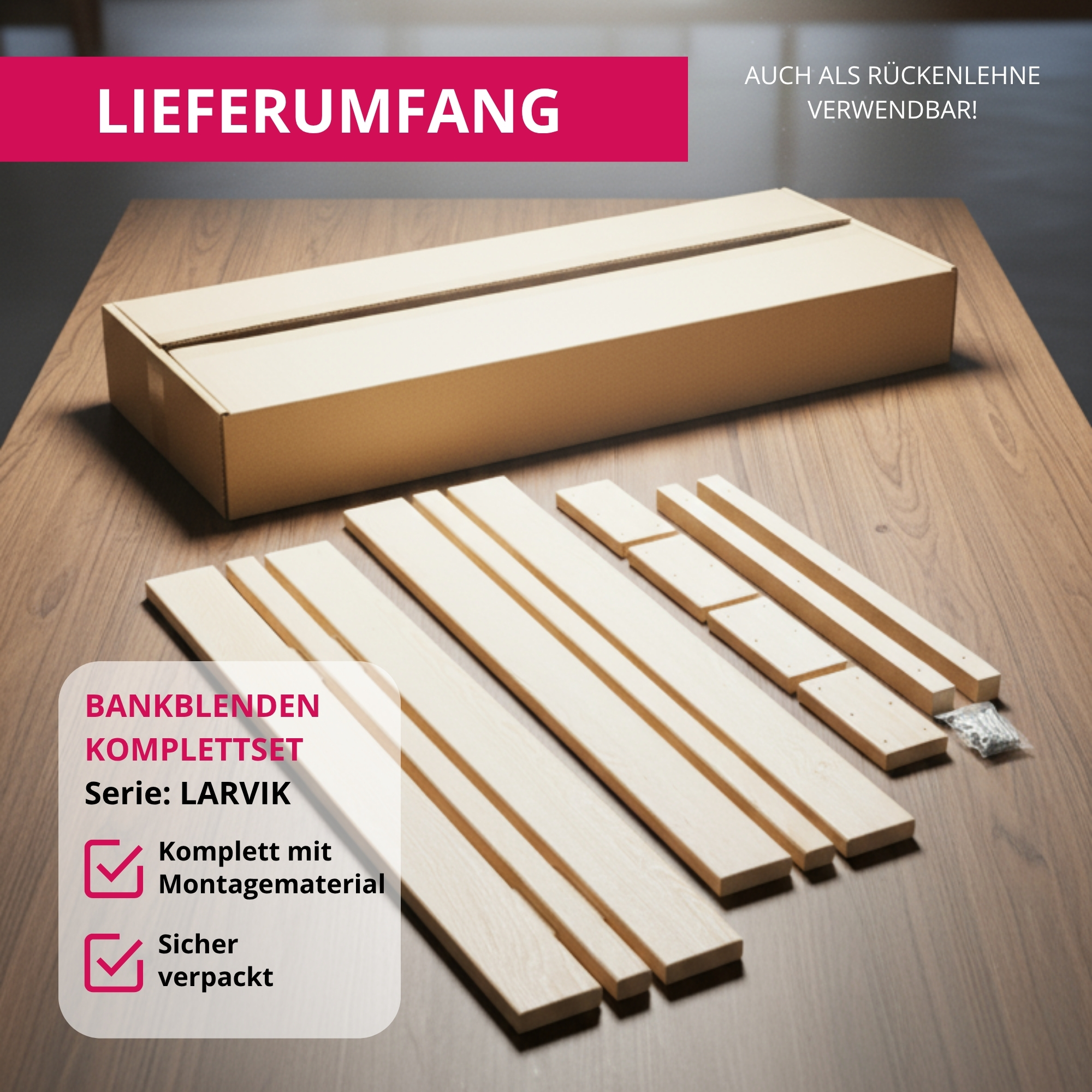 Bankblende Hemlock naturbelassen, Modell LARVIK 2 Stück 850 × 219 mm