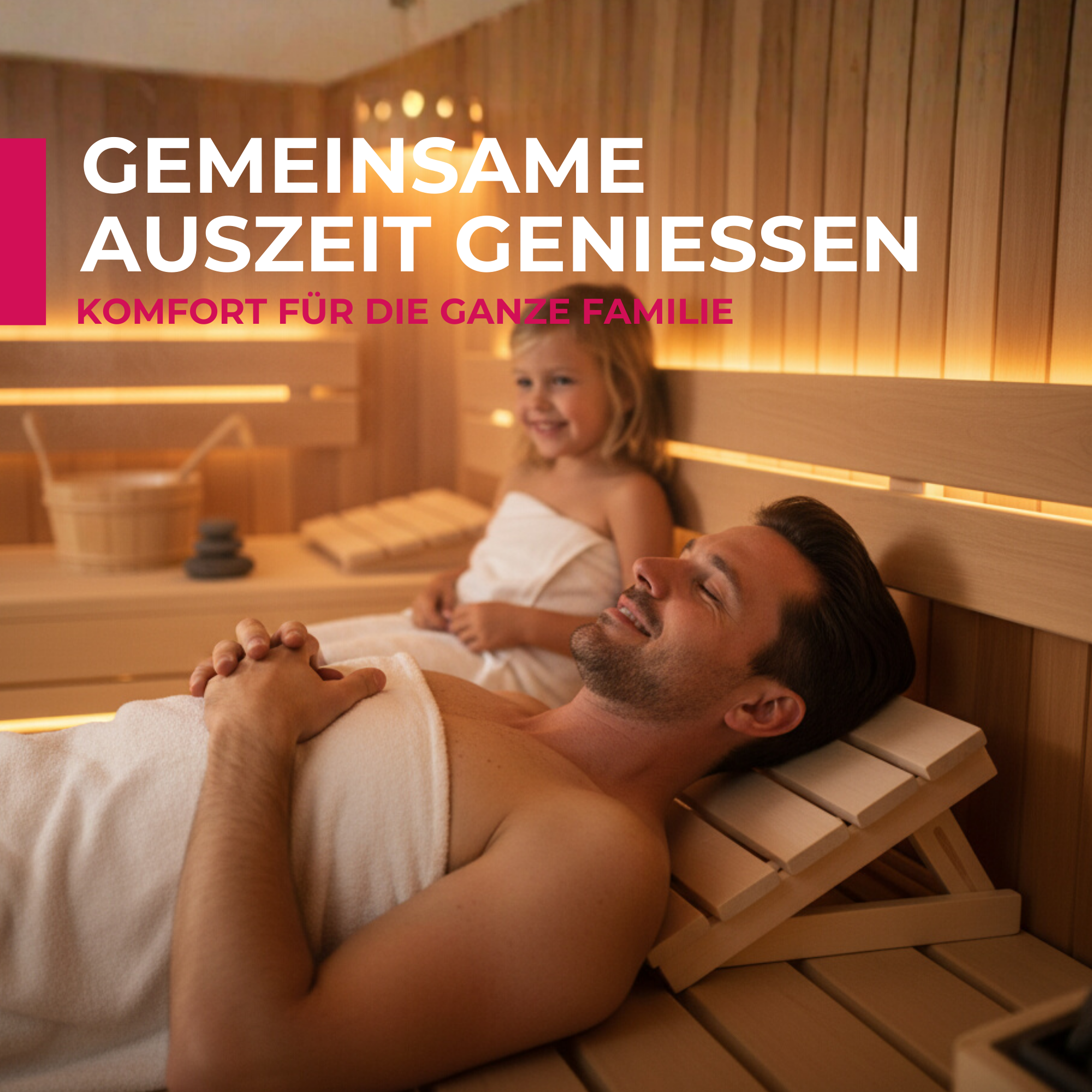 • Hochwertiges Espenholz: Sanfte, naturbelassene Oberfläche, ideal für hohe Temperaturen und häufige Saunagänge.