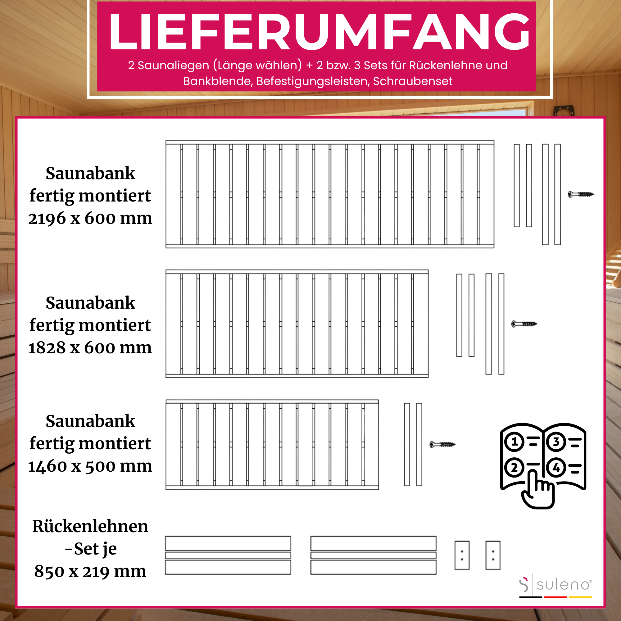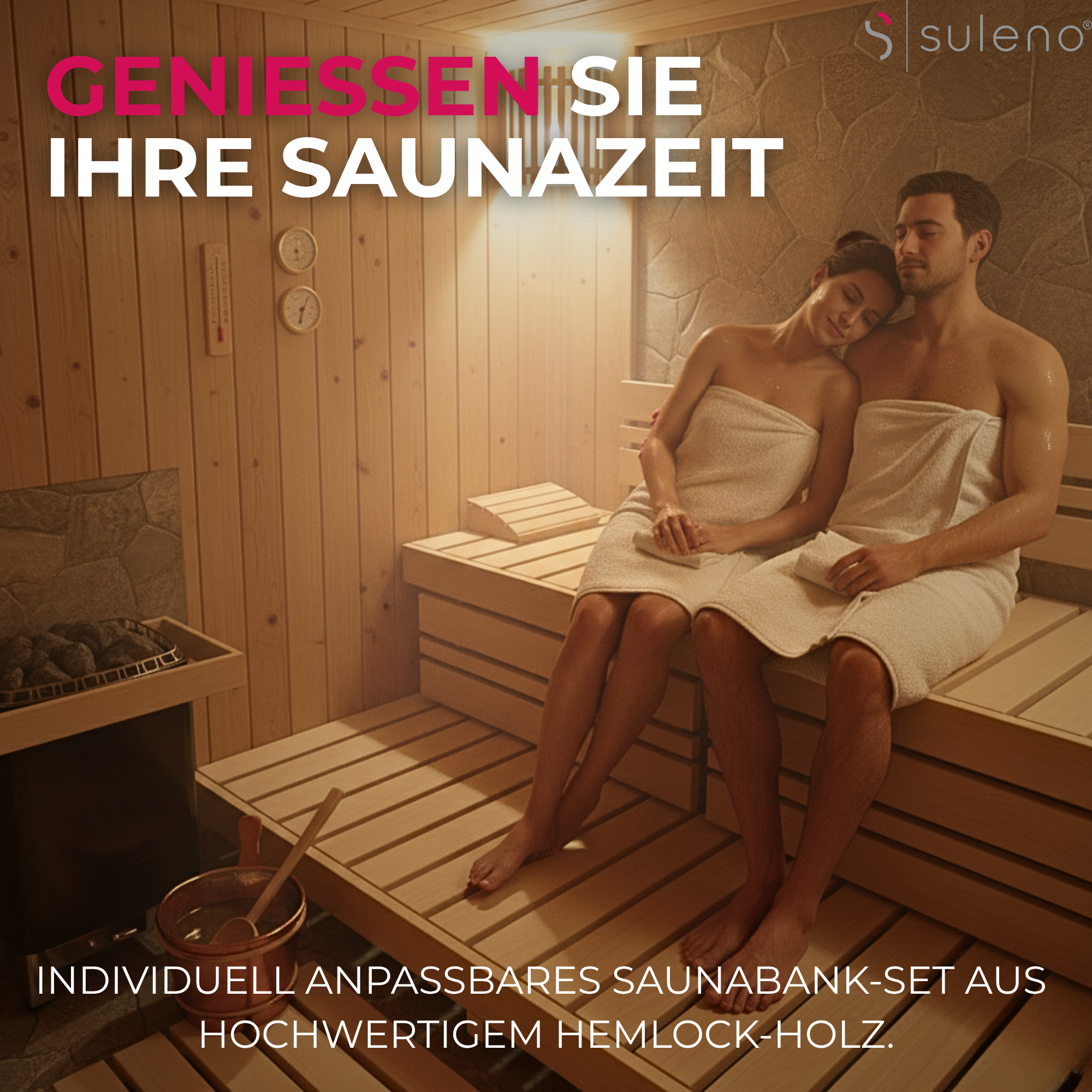 Ihr flexibles Premium-Komplettset für den individuellen Saunabau – Saunabank- und Rückenlehnenset MALMÖ von Suleno