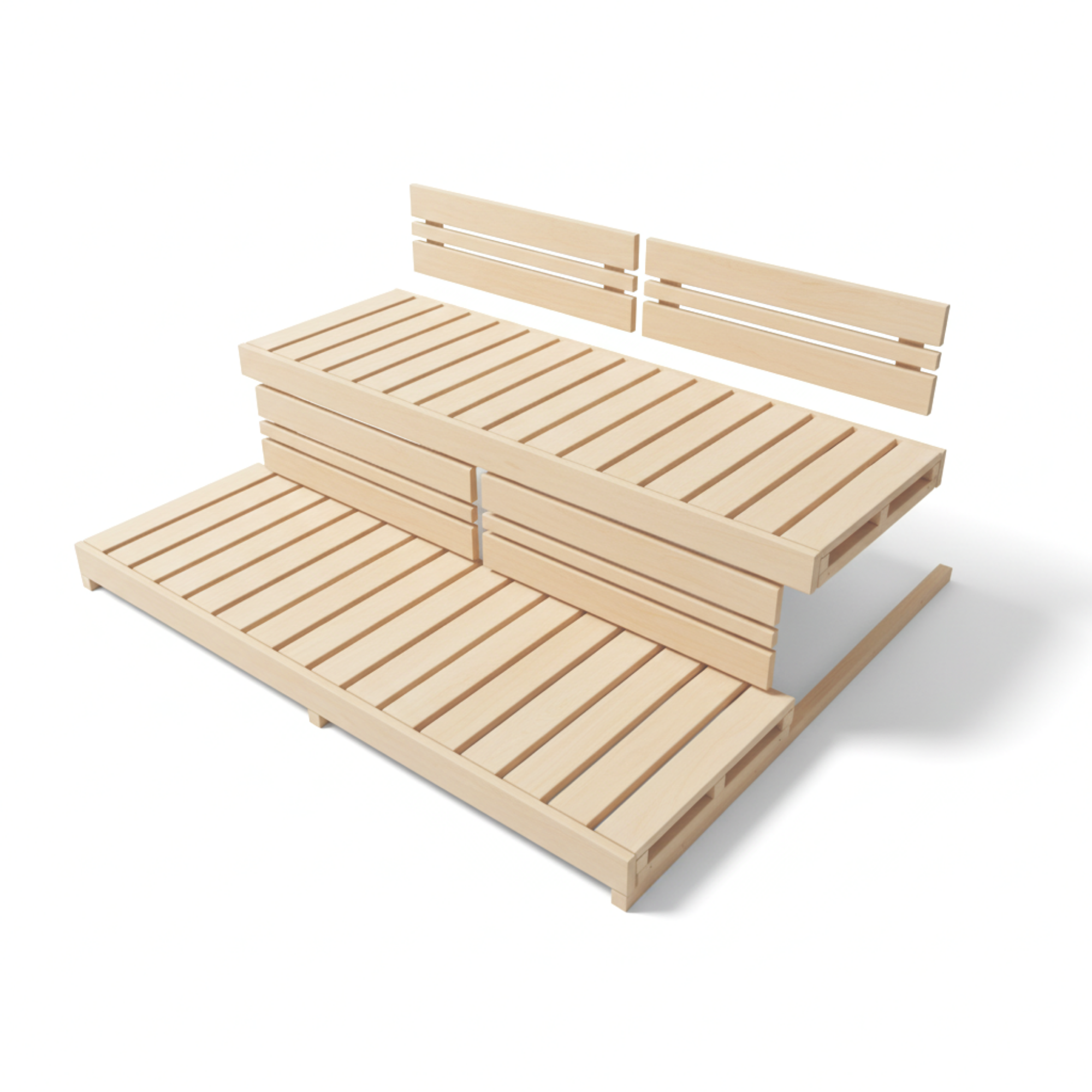 • Durchdachtes Design: Die Rückenlehnen und Bankblenden sind perfekt auf die Saunaliegen abgestimmt und sorgen für ein harmonisches Gesamtbild – funktional, elegant und langlebig.