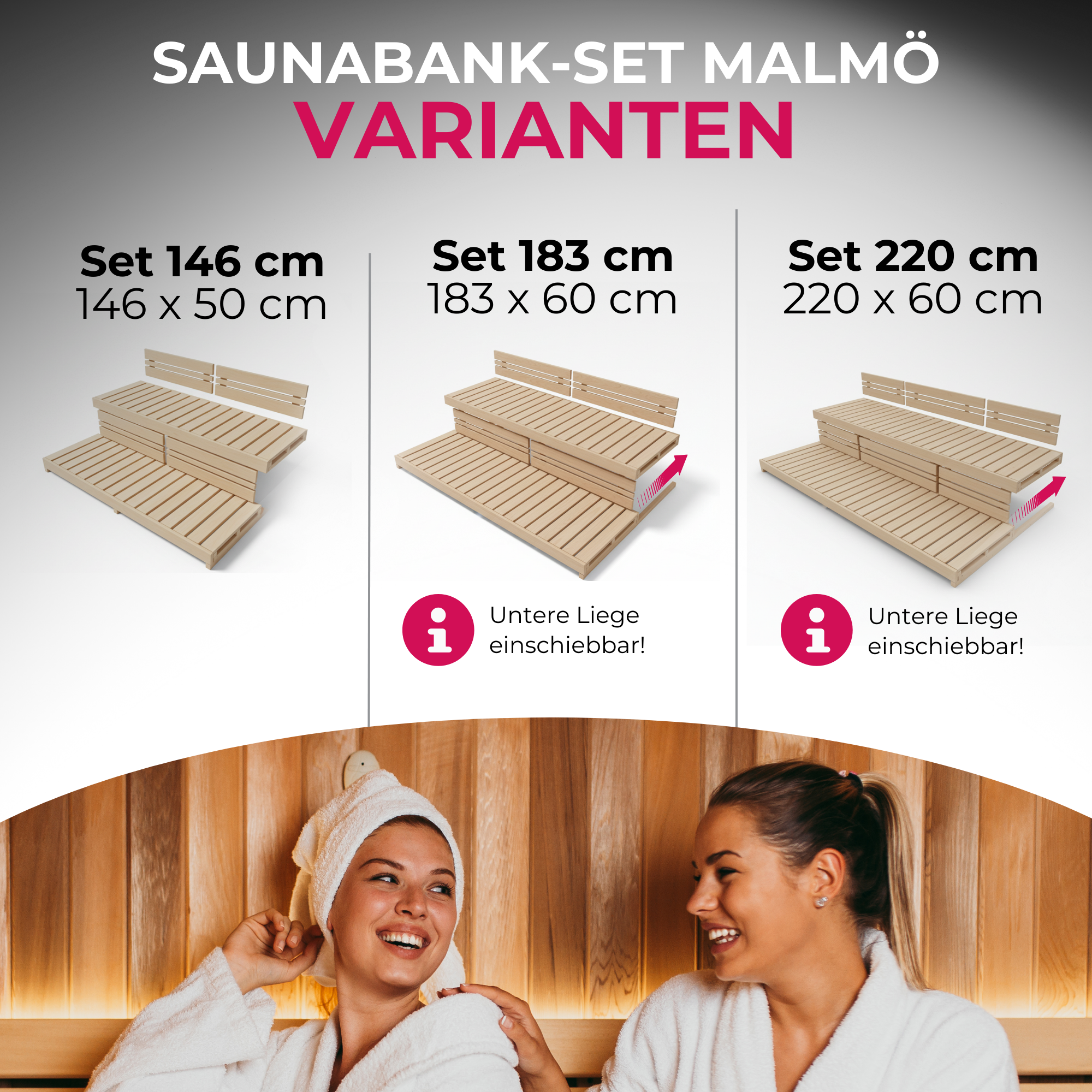 • Optisch und qualitativ perfekt abgestimmt auf die Saunaliegen